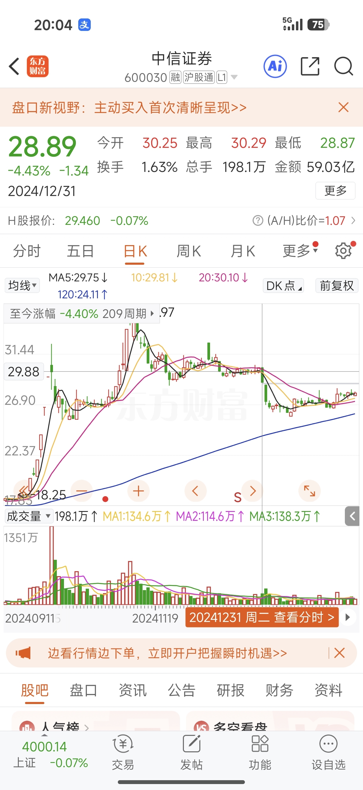 $中信证券(SH600030)$ 是不是和1月份一毛一样,准备迎接大跌吧