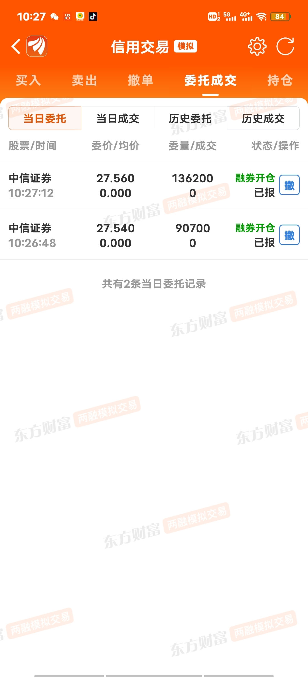 $中信证券(SH600030)$ 大概率是要下个台阶,模拟搞一下,融券卖出,挂的有点高,看能不能成交