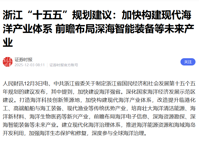 公司是否有基金提前布局深海科技行业,可否推荐一下???浙江“十五五”规划建议:加