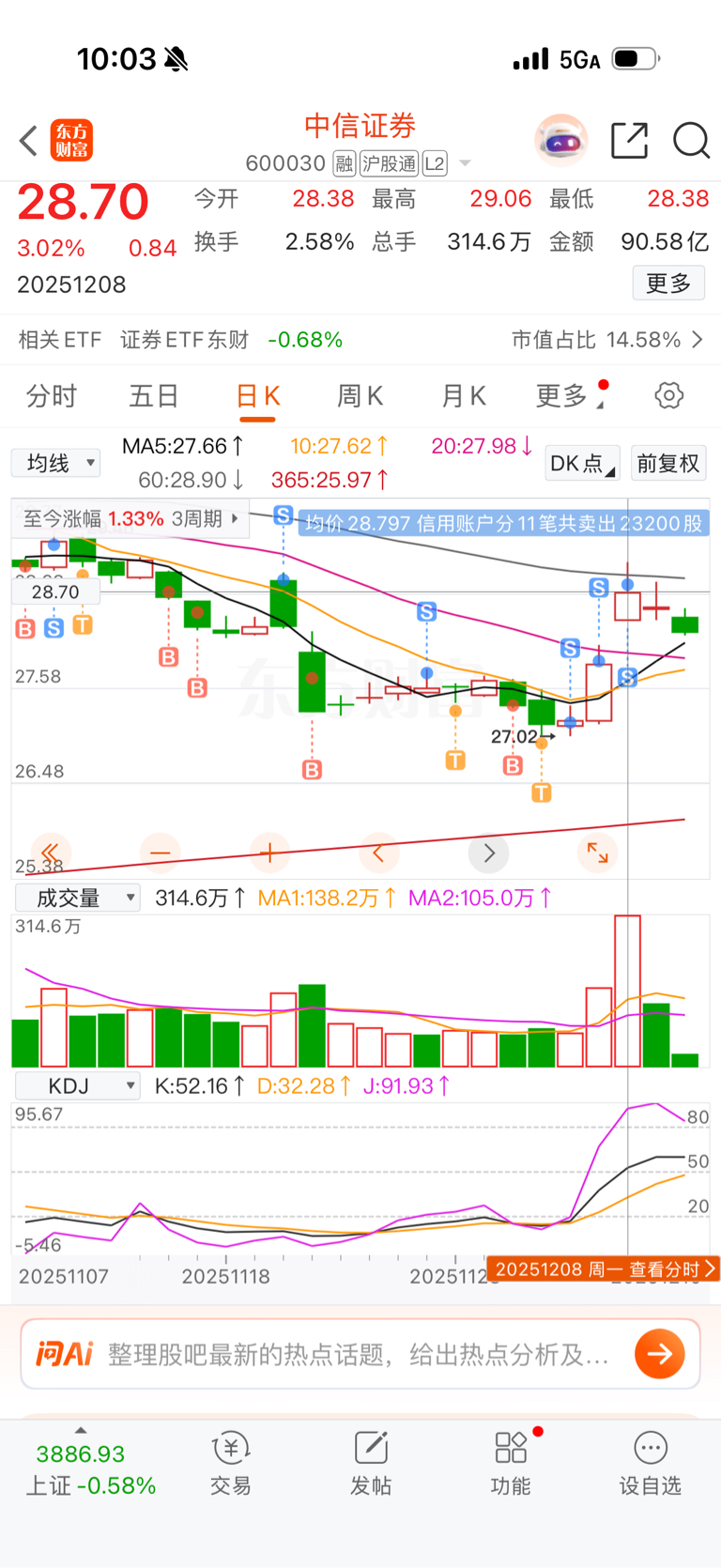 $中信证券(SH600030)$ 谢谢主力给机会解套,来年再见