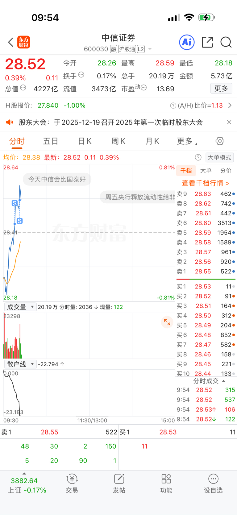 $中信证券(SH600030)$ 感谢主力哥哥能了三千快