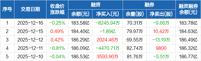 中信证券:融资净偿还8245.94万元,融资余额183.58亿元(12-16)