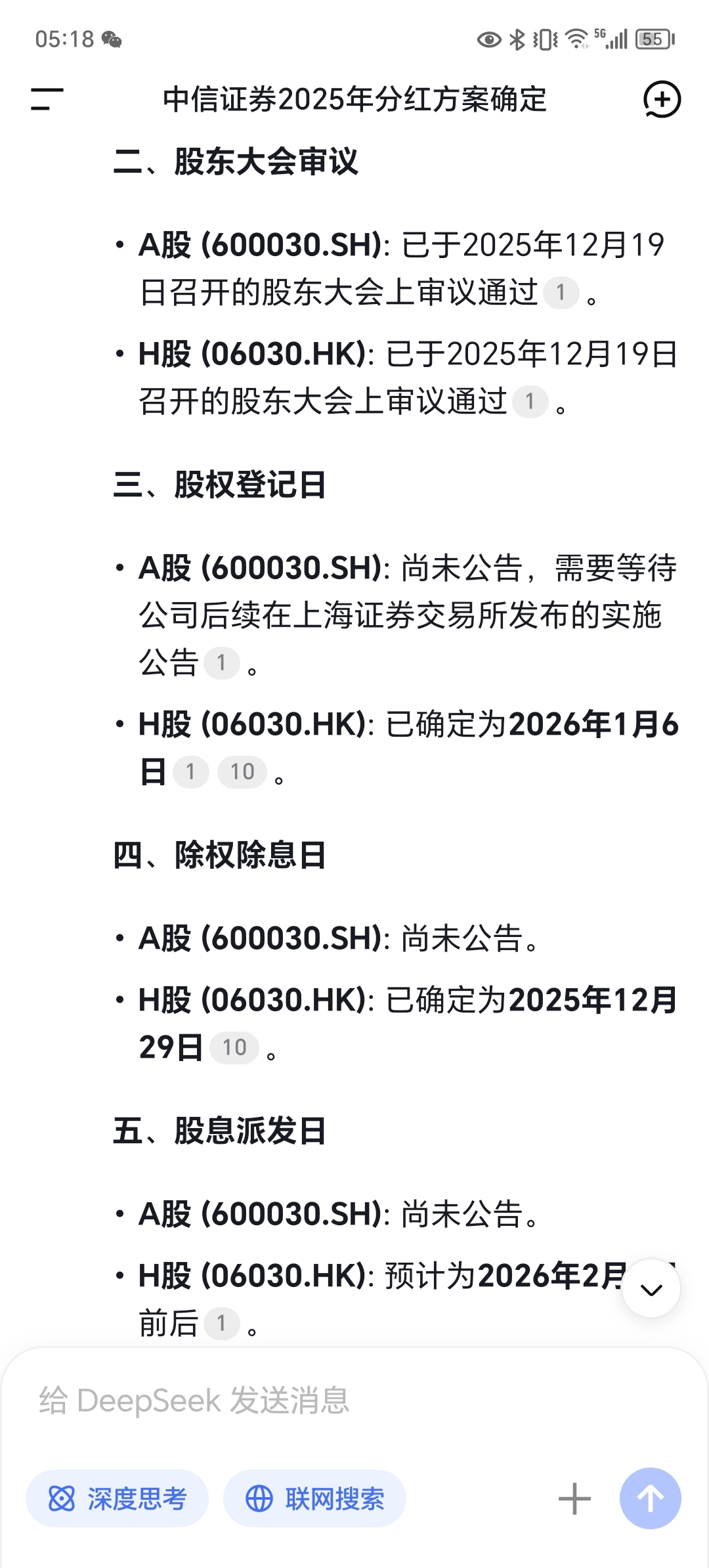 $中信证券(SH600030)$ 睡梦中醒来,又问了ds一次,坐等右等的分红还没有迹象啊,等的冒烟了