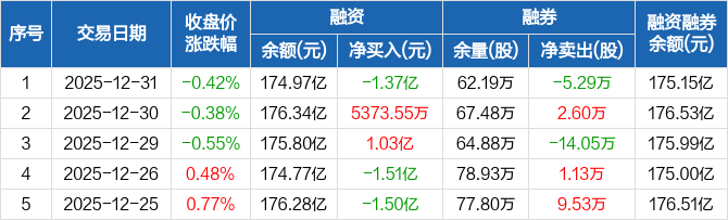 中信证券:融资净偿还1.37亿元,融资余额174.97亿元(12-31)