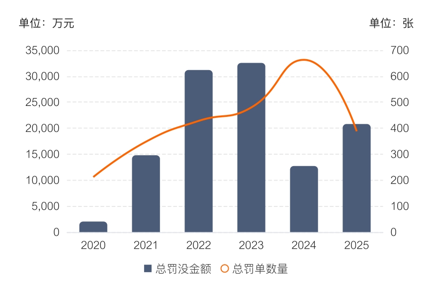 金融投资网记者注意到,2025年券商监管处罚总体呈现出“罚单量下降,处罚金额上升”的态势。根据企业预警通统计,2025年监管机构开出的罚单总量比2024年(663张)减少了41.48%,处罚总金额却比2024年(1.27亿元)增长了63.57%。业内人士认为,造成这一情况的核心原因是监管从“广覆盖”转向“精准打击”,聚焦重大违法违规行为,同时通过交易IP追踪、资金流向核查等技术手段,精准识别隐蔽性强的大额违规行为,再加上对历史违规追责时效延长,这些因素共同推高了罚没金额。