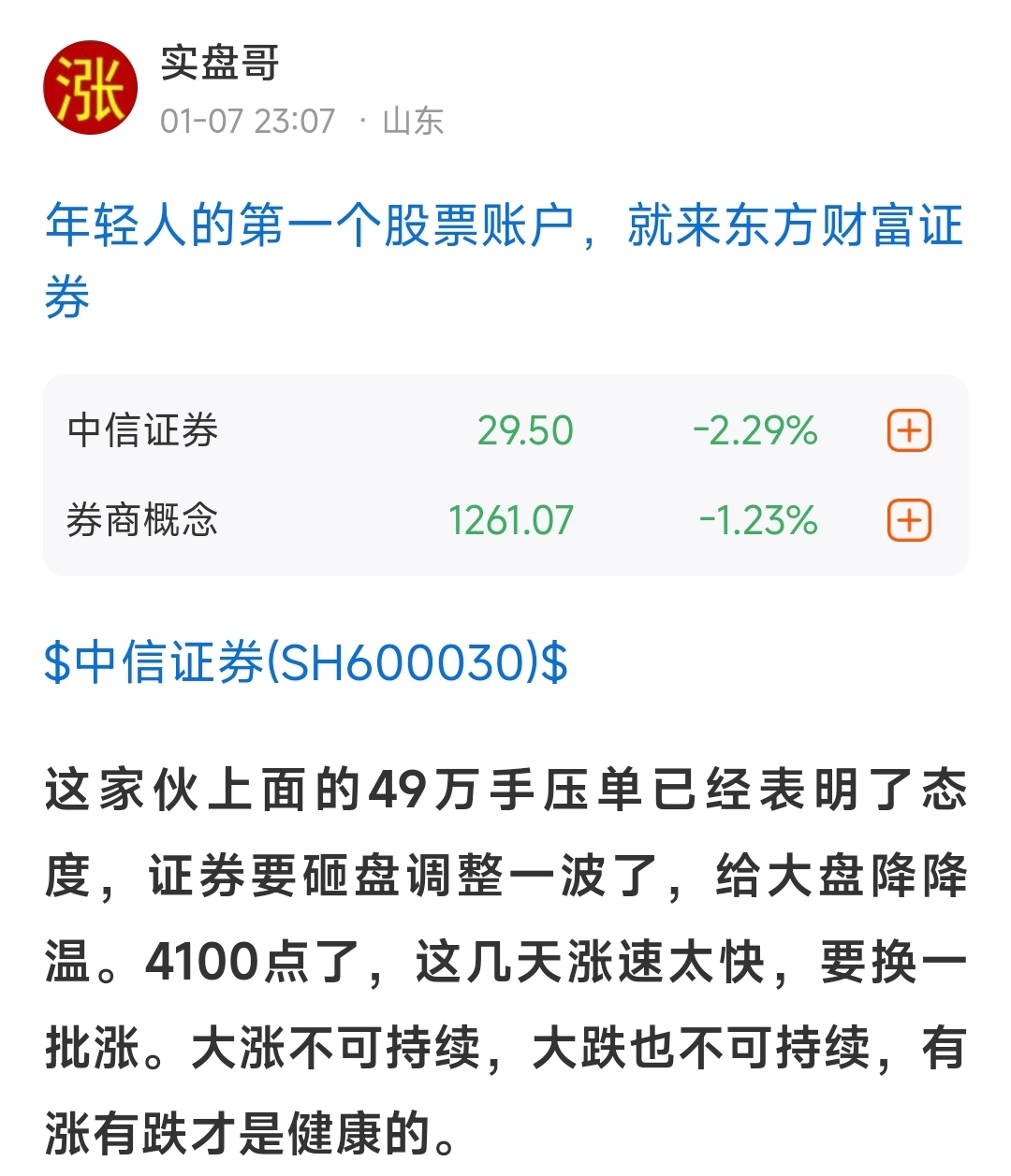 温馨提示: 1.根据《证券法》规定,禁止编造、传播虚假信息或者误导性信息,扰乱证券市场;2.用户在本社区发表的所有资料、言论等仅代表个人观点,与本网站立场无关,不对您构成任何投资建议。用户应基于自己的独立判断,自行决定证券投资并承担相应风险。《东方财富社区管理规定》