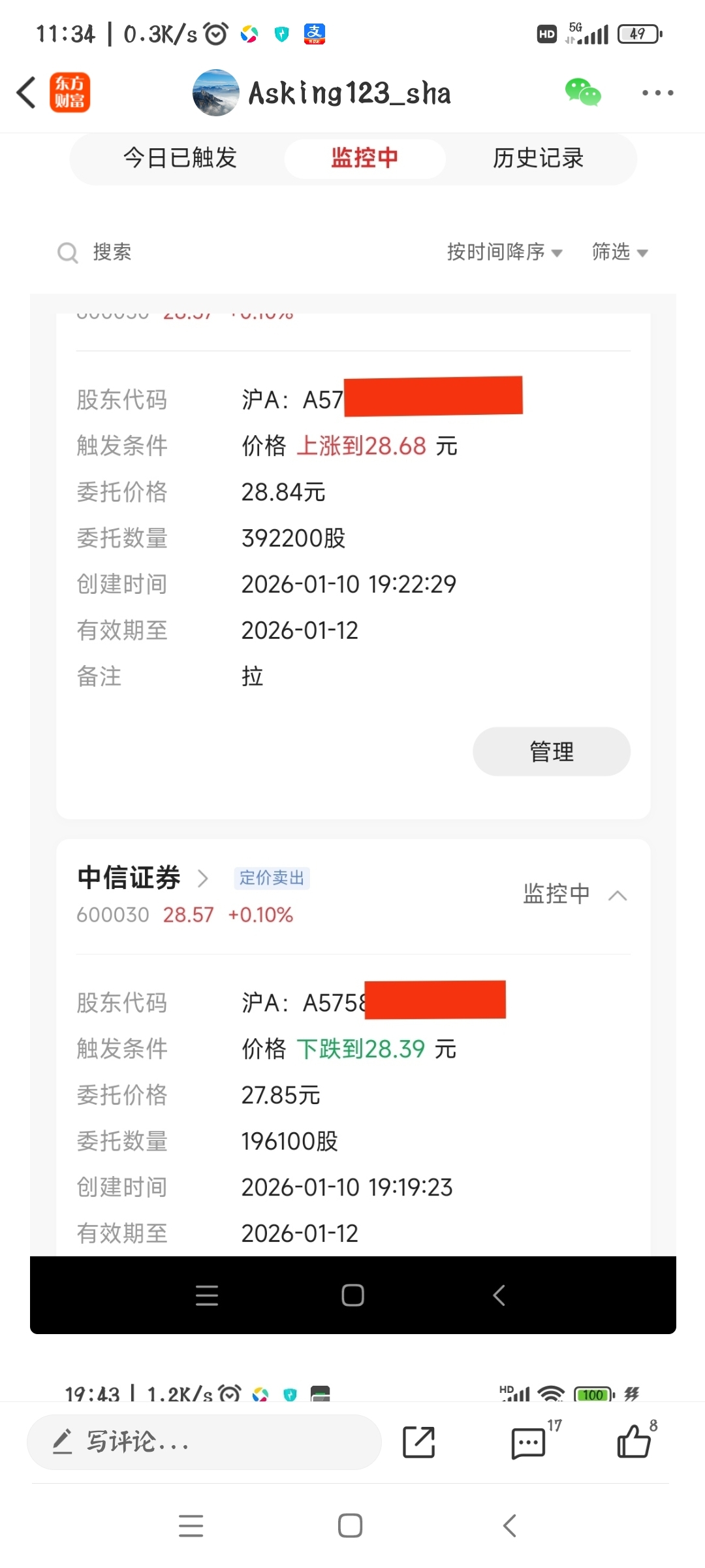 $中信证券(SH600030)$ 你到底想干嘛,差2分未触发不让我砸盘,往上拉又不正尔八经拉,往上拉我要吃,大单你一直撤,只吃了散单小单