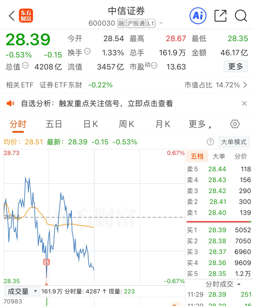 $中信证券(SH600030)$ 主力!睁大你的卡姿兰!