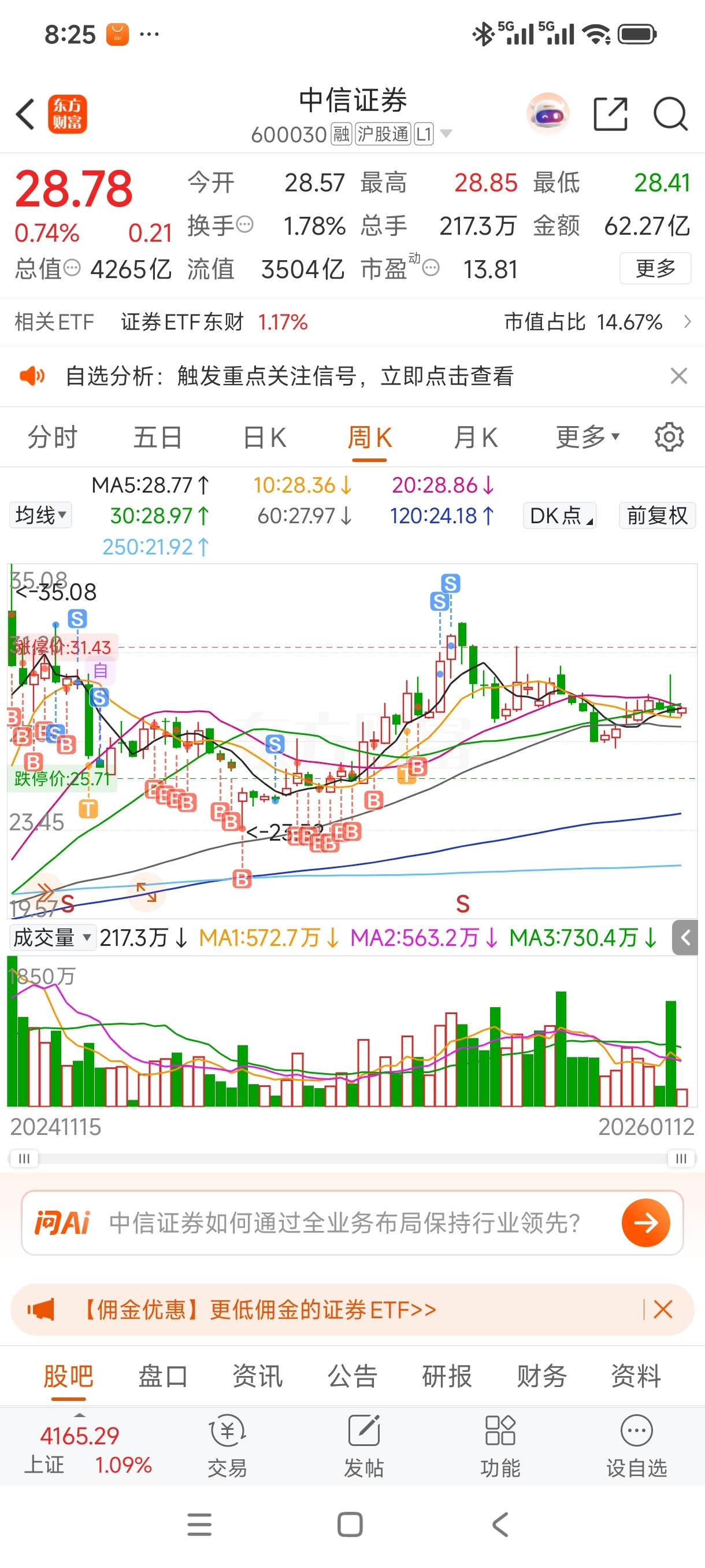 $中信证券(SH600030)$ 再不上涨!我就要买你了!