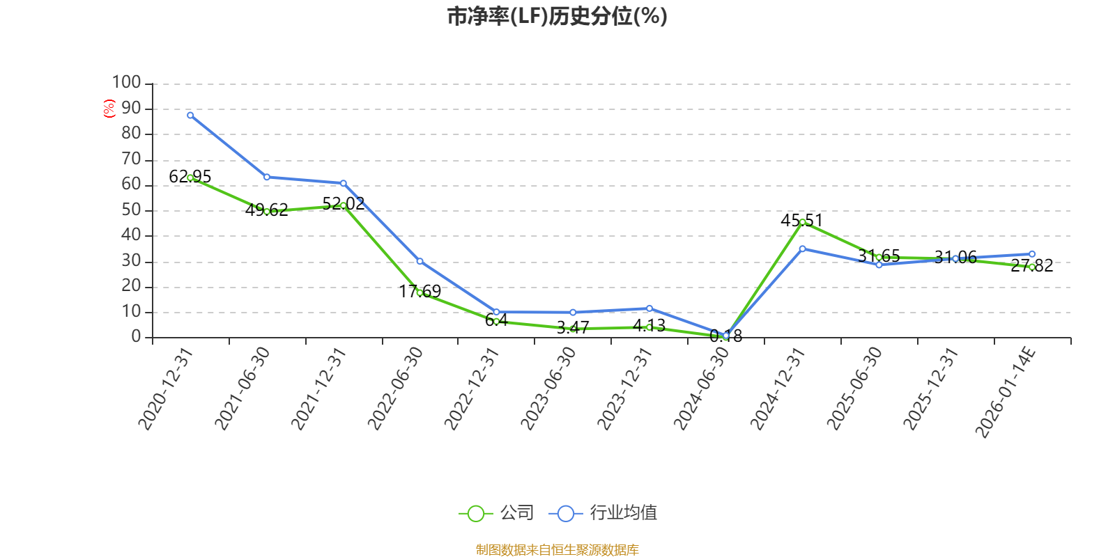 市盈率、市净率为负时,不显示当期分位数,会导致折线图中断。