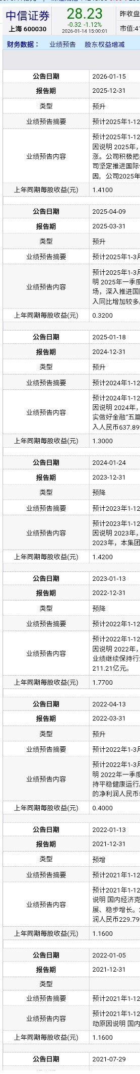 $中信证券(SH600030)$ 昨晚发布的是预报,每年差不多都是这个时间点。每年4月份的正式公告的数值与预报基本没有差异或差异不大。