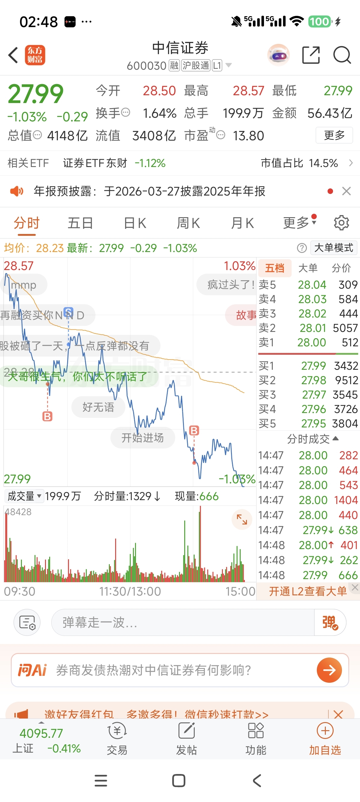 $中信证券(SH600030)$ 我CNND,这就是赚了300亿的下场吗?天天跌,毫无反弹。