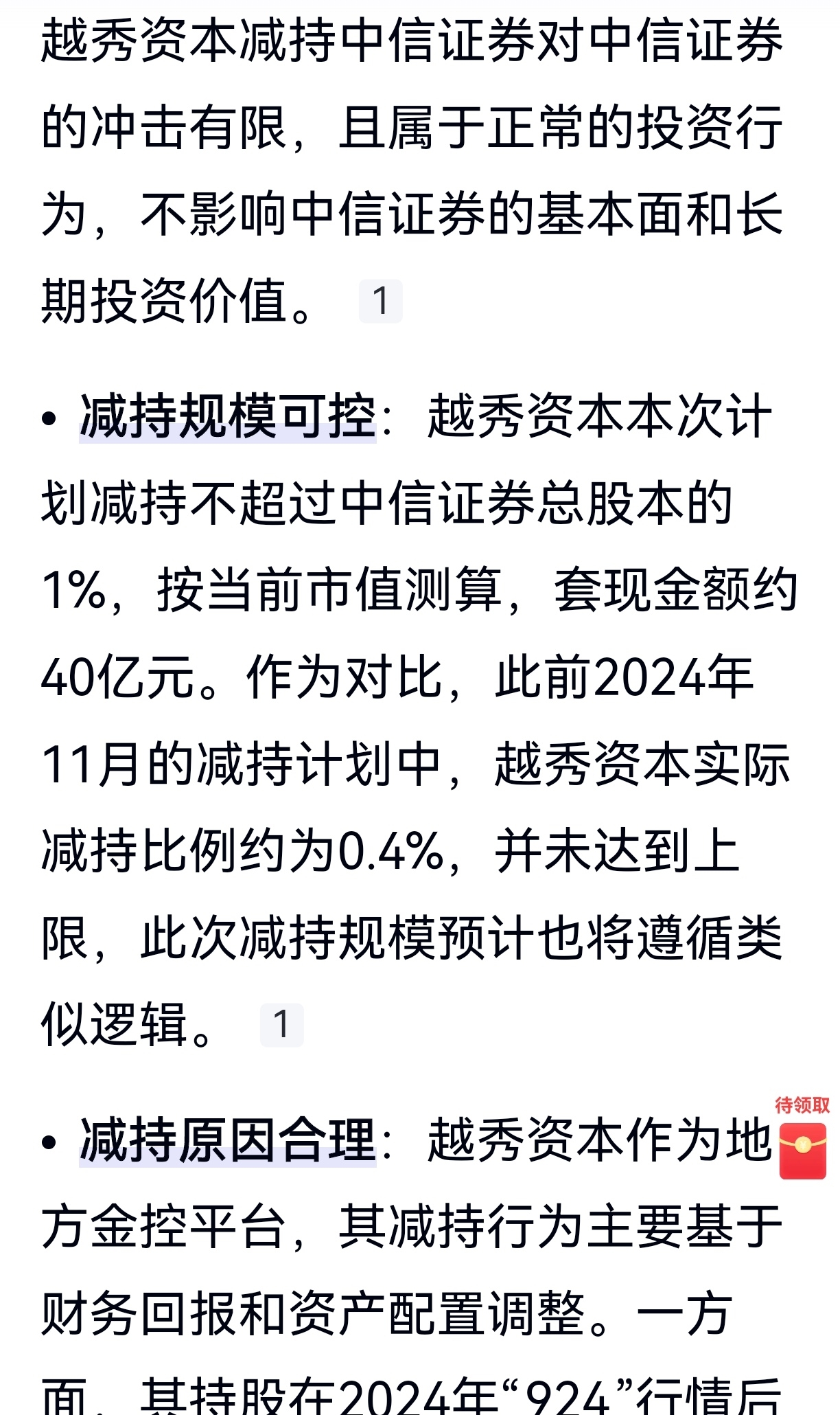 越秀减持影响较小,如按4o亿股票盘子测算百分之一也就4千万,分H、A股两边一年减