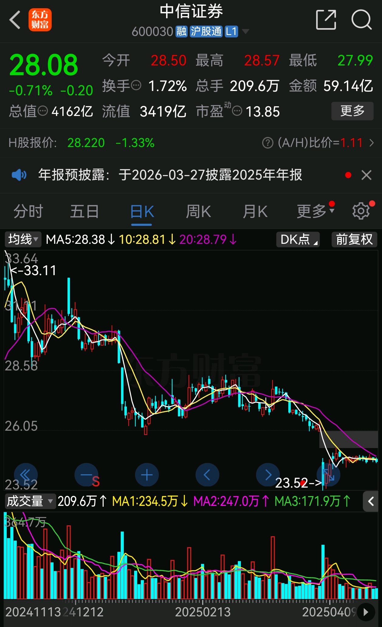 $中信证券(SH600030)$ 上一次越秀2024.11.13发布发布减持1%,一路下跌了30%多,周一就是拼跑路的速度了。