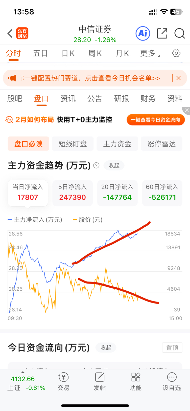 $中信证券(SH600030)$ 中信真牛,资金在流入,股价在下跌