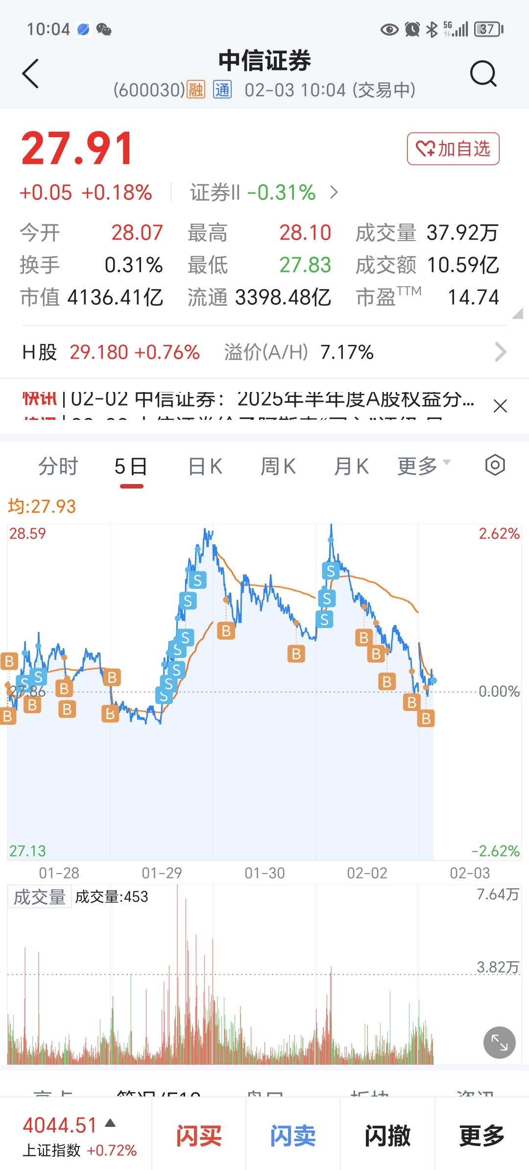 $中信证券(SH600030)$ 都是手续费,挣点钱都给国家了