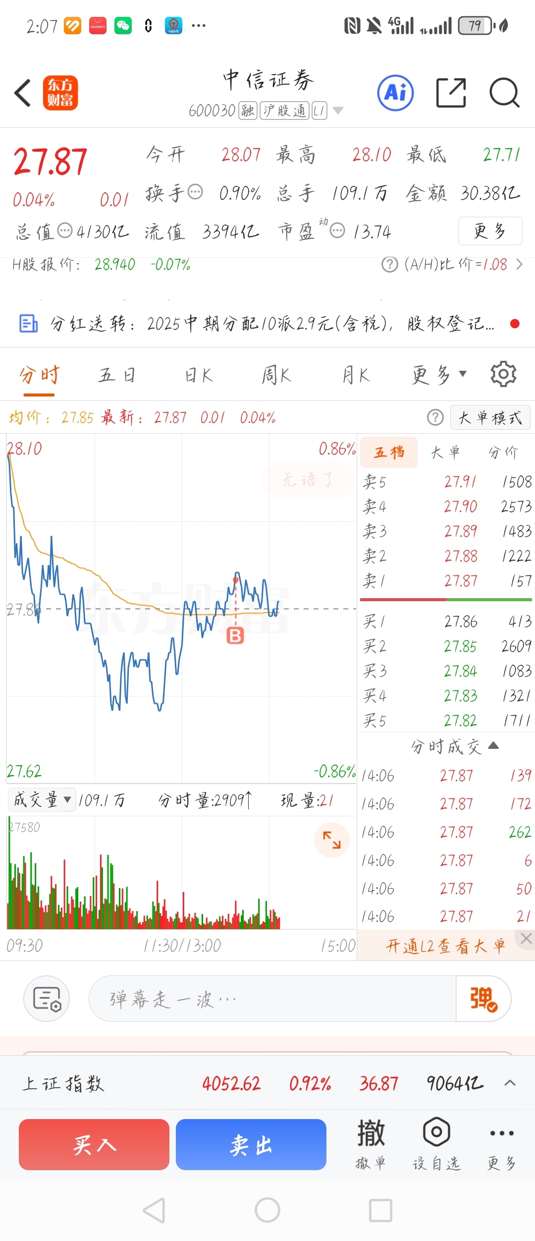 $中信证券(SH600030)$ 兄弟们怪我呀,我又买了5万多给你们买跌了。