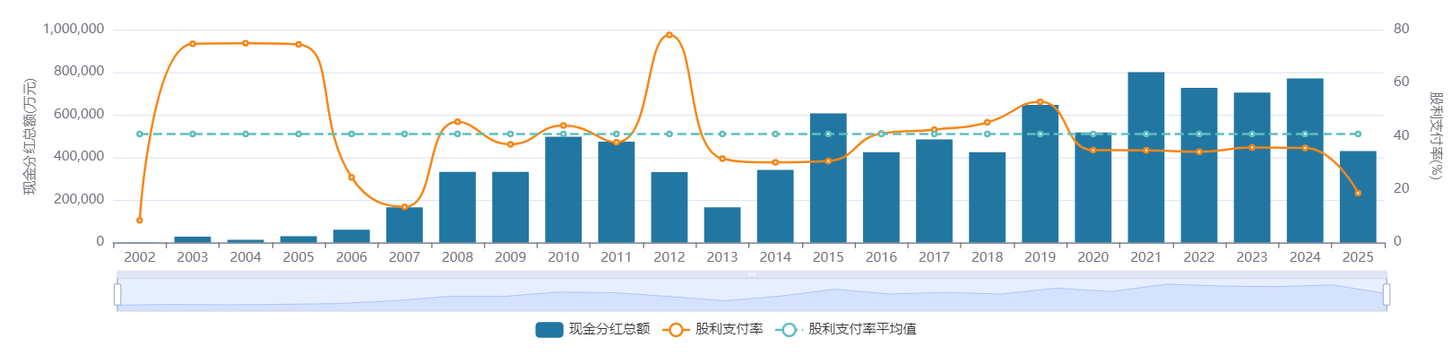 中信证券凭借稳健的资本实力和持续盈利能力,长期保持相对稳定的分红政策。自2003年A股上市以来,中信证券连续23年开展现金分红,累计现金分红25次(其中2次为中期分红),累计现金分红超930亿元,平均分红率达35.23%。