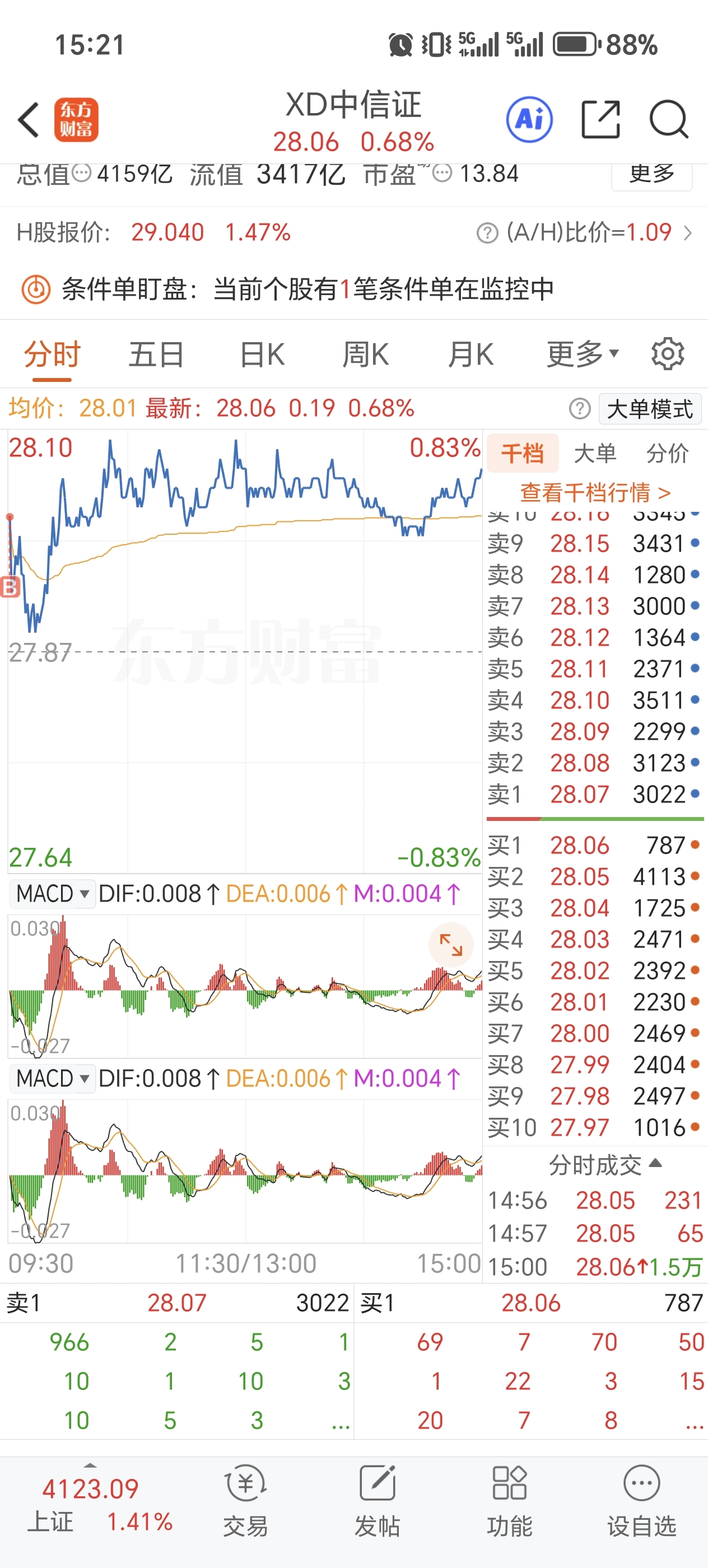 $XD中信证(SH600030)$ 分红加仓。继续熬。目标半年内40
