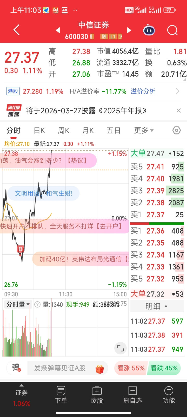 $中信证券(SH600030)$ 别人恐慌我贪婪