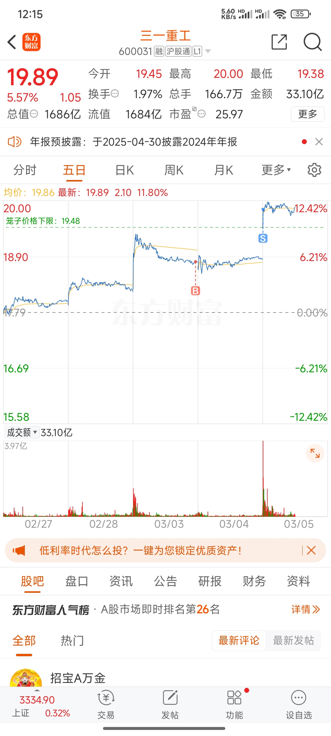 $三一重工(SH600031)$ 赚点生活费走了,留下的继续发财