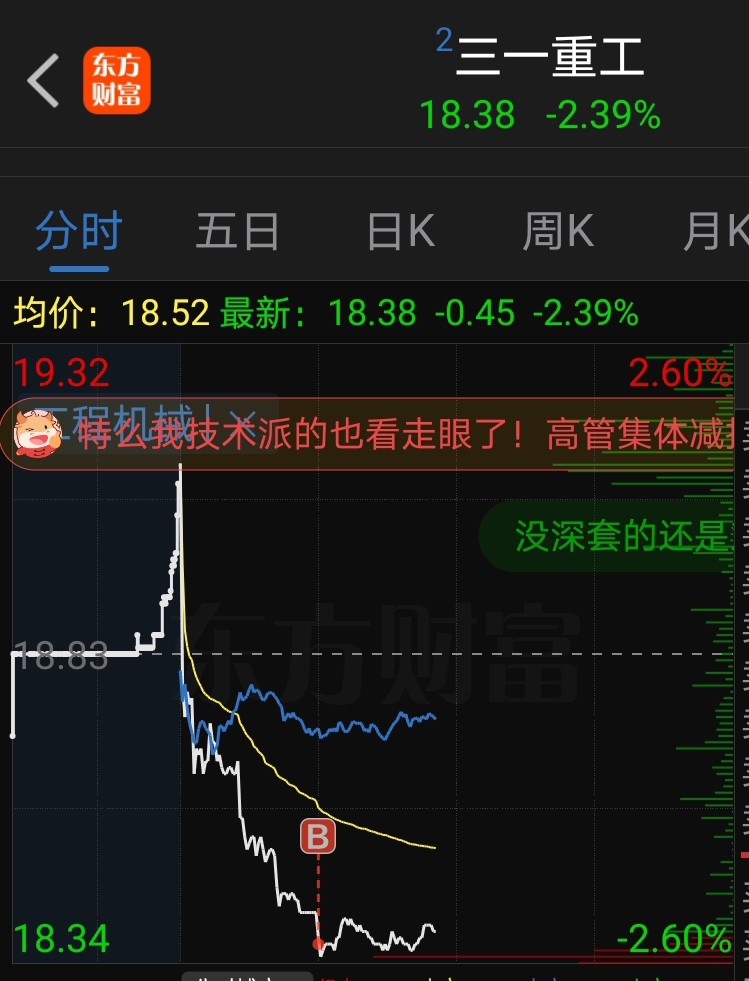 $三一重工(SH600031)$ 特么我技术派的也看走眼了!高管集体减持的哪有什么潜力股?买入五千股后,整个趋势就直接破了!