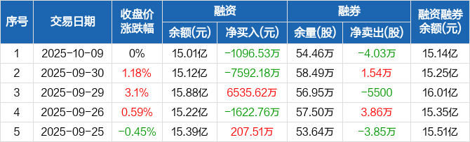 三一重工:融资净偿还1096.53万元,融资余额15.01亿元(10-09)