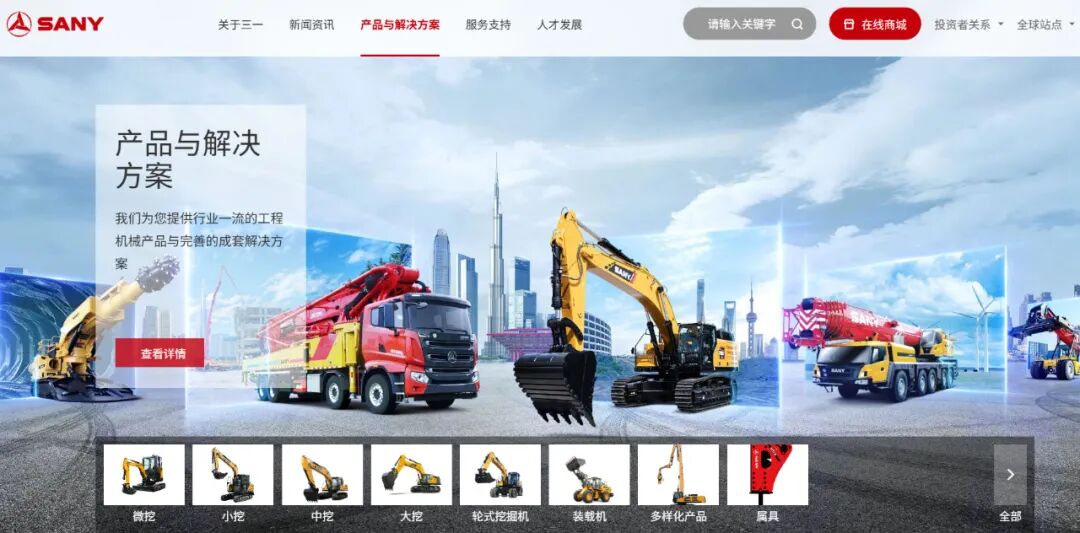以产品为例,其针对欧洲市场,研发符合欧五排放标准的挖掘机;面对非洲高温环境,定制耐高温设备;还为中东北非市场,推出定制防沙尘机型。