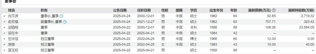 向文波2024年薪酬为92.9万元,其直接持有三一重工2719.3万股,加之持有三一集团8%股权,据胡润榜单,其个人财富达到95亿元;向的同事,三一重工总裁俞宏福,去年薪酬高达707.7万元。