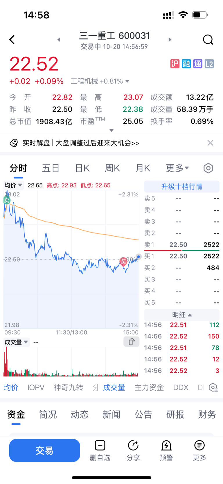 $三一重工(SH600031)$ 23.02卖,22.40买,明天开盘就卖