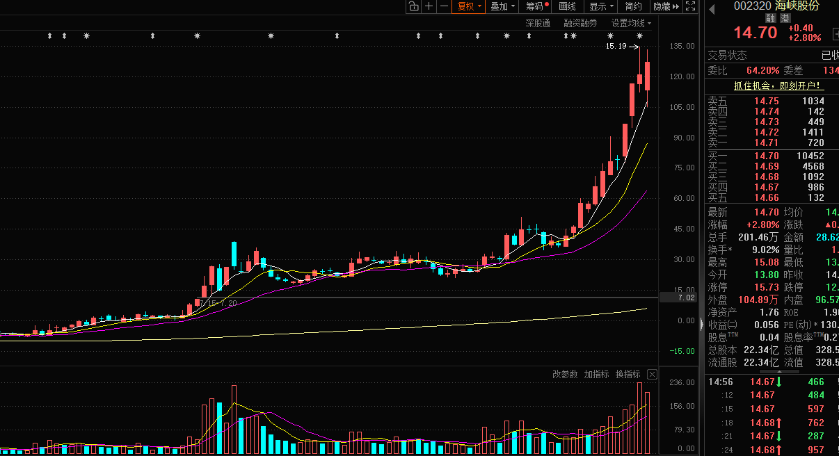 海峡股份:海南概念,公司主营业务为船舶运输和轮渡港口服务。昨天日内完成了分歧然后修复,而且几乎刚好回踩5天线,昨天也有讲的,短期上方已经没有压力,所以可以看看今天能否来个中阳线。有的话就还能留下。