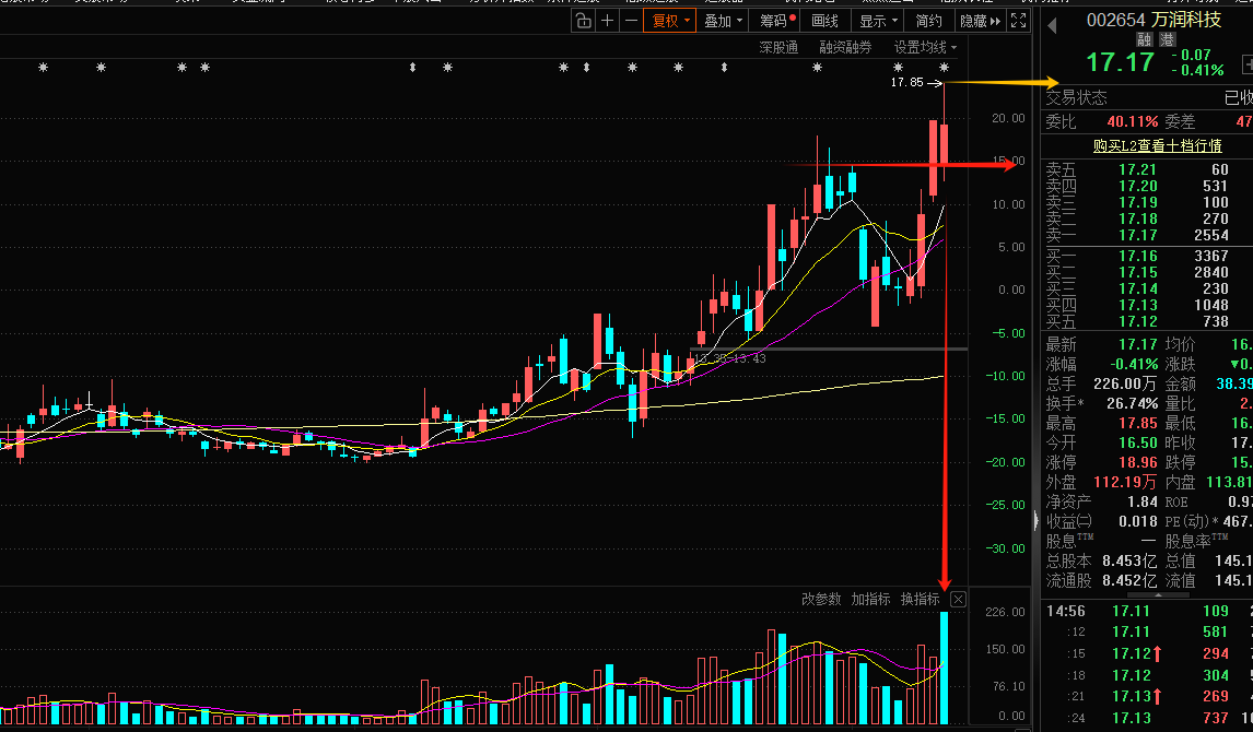 万润科技:存储概念,子公司主要聚焦半导体的山村封装和山村测试等,昨天是低开然后拉升的,下影线也刚好试探了上一波的支撑是否牢靠。今天如果能继续新高的话就可以沿着5天线看看大新高19.8能否突破,否则今天很容易出现冲高回落的戏码。那么应对有两种:第一是如果上午冲高不破昨天的高点,那就落袋走。或者冲高之后不能站稳前天的收盘价也可以走。