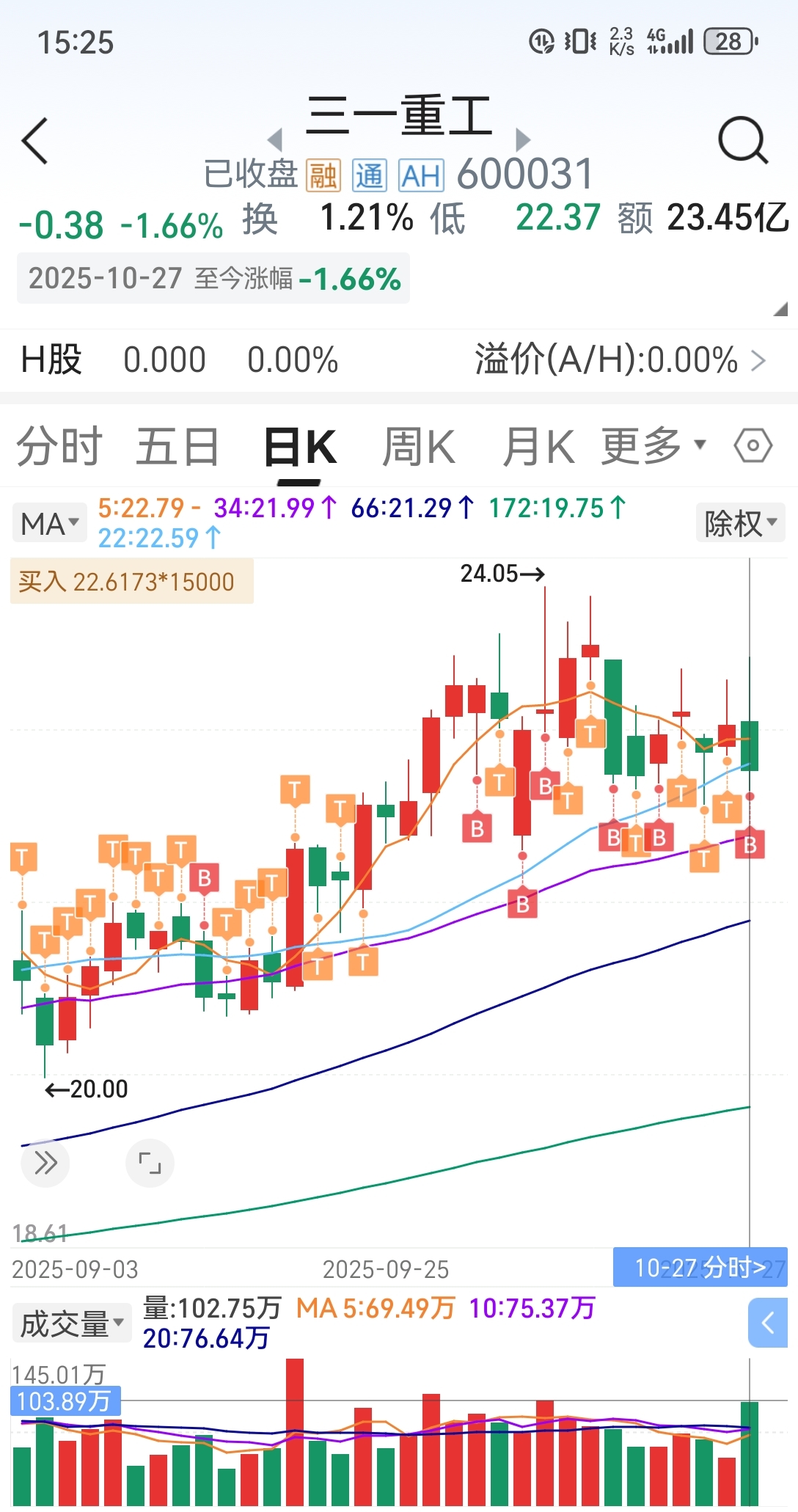 $三一重工(SH600031)$ 恭喜今天做T的朋友,压力位T出是应该的!折腾不止,加仓不止!有量就好,有粮就好!