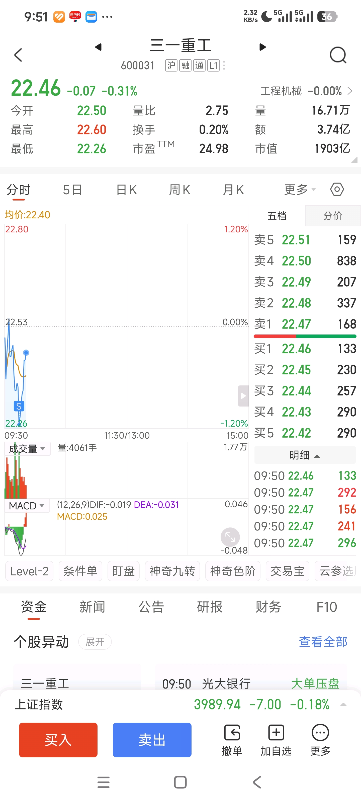 $三一重工(SH600031)$ 我是老韭菜了,昨天买到最高点,今天卖到最低点