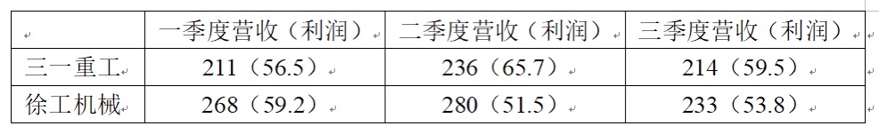对比三一和徐工前三季度的营收和利润,就会发现三一持续走好,营收差距逐步缩小,四季