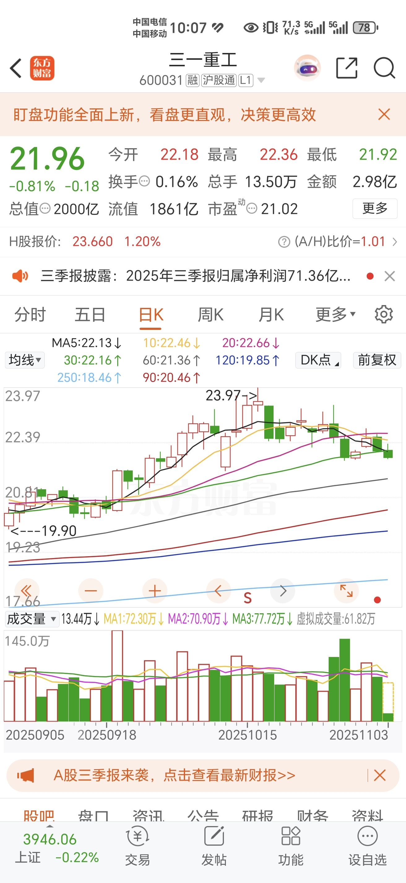 $三一重工(SH600031)$ 严重怀疑三一重工这财报有问题,业绩差了连涨两天,业绩好的反而连跌两天。