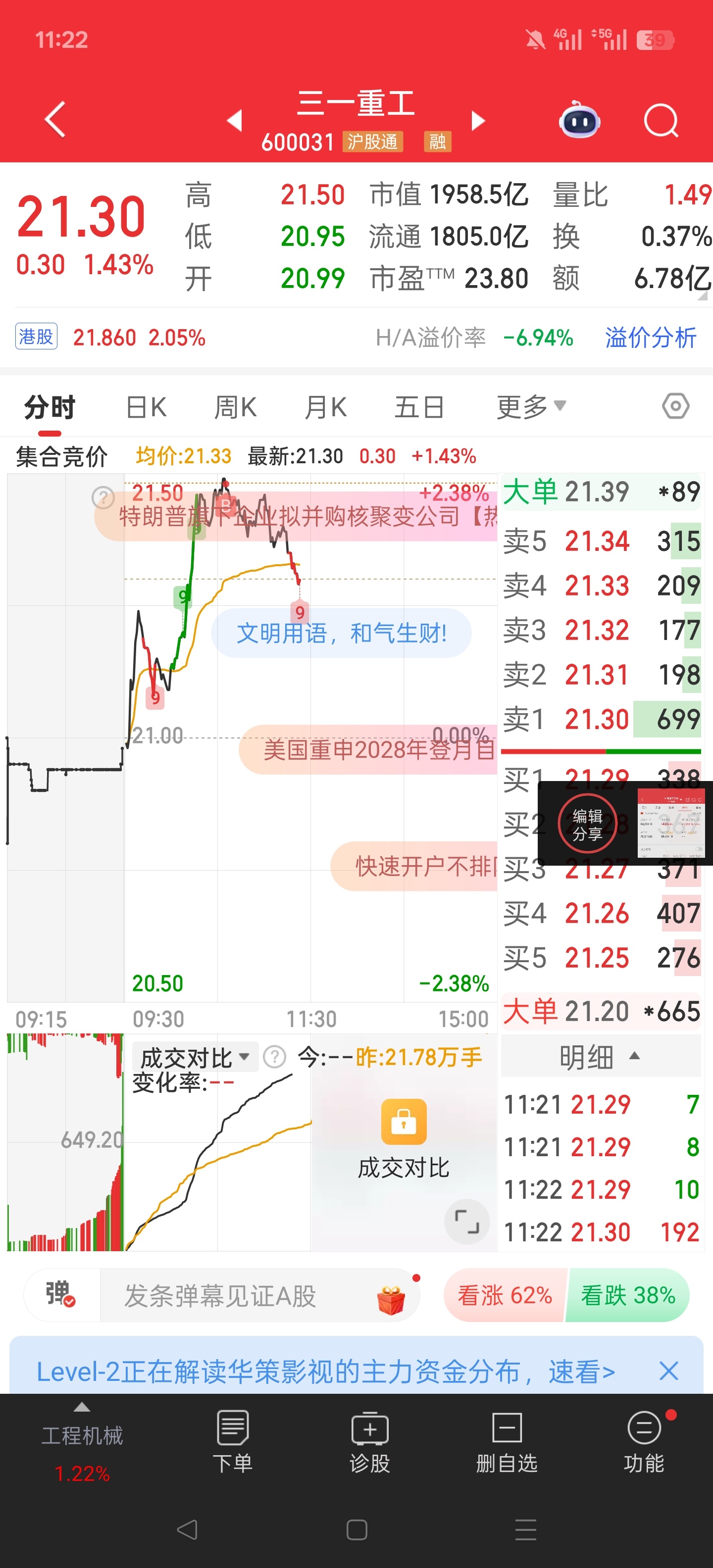 $三一重工(SH600031)$ 就盯着我一个人割吗