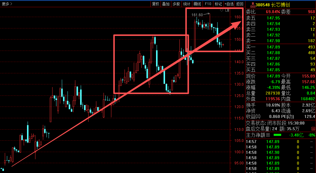今天他定是要持续加速走强,反之他今天要是没有加速走强上板,那从缠论的角度看,他的日线趋势就有背驰的状态了,也是缠论一麦的位置,昨天为了防他这个位置走出来一麦的位置,也是高位减半了,今天要是能加速走强上板,那日线级别的走势就没有背驰了,今天他的想法很简单,没有持续加速走强,就离开。