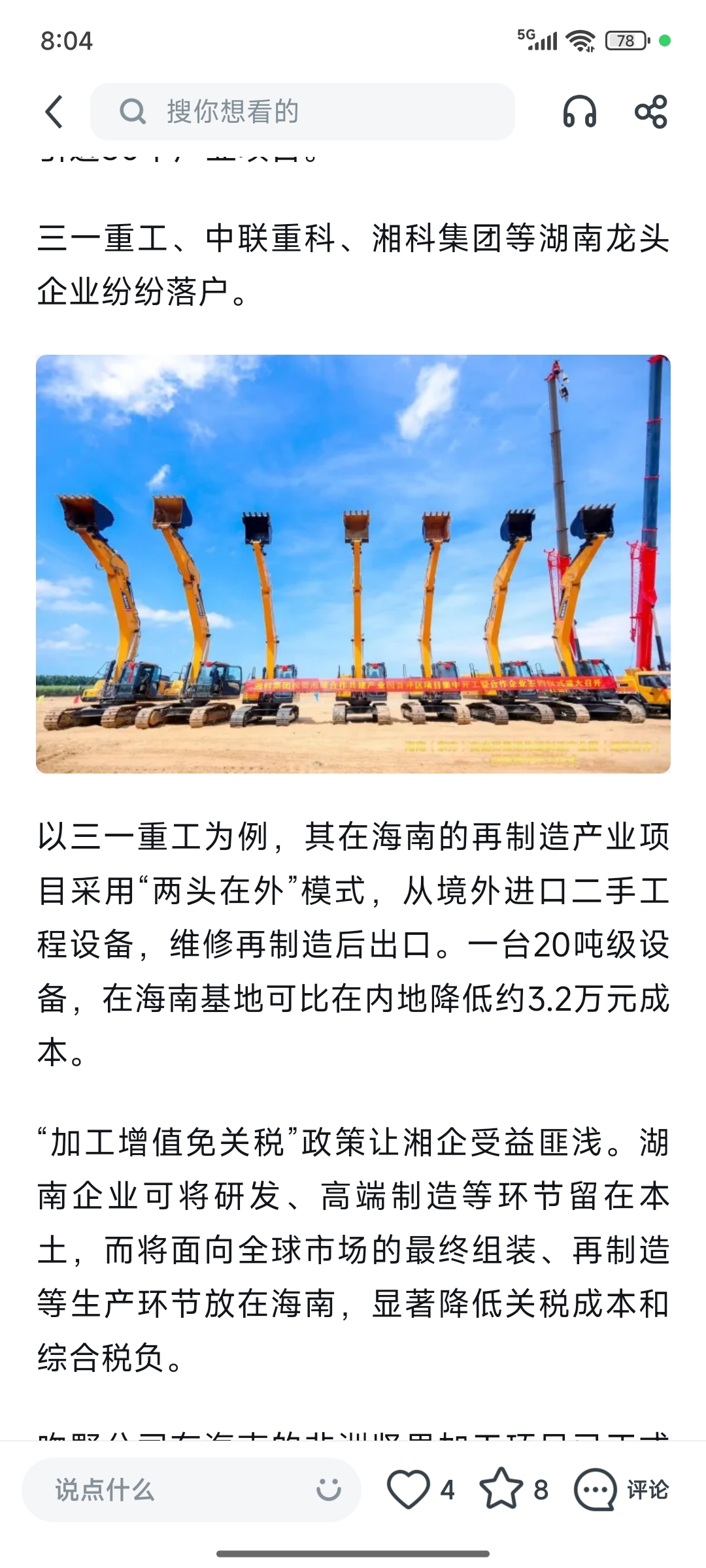 $三一重工(SH600031)$ 海南封关对三一等工程机械企业利好。