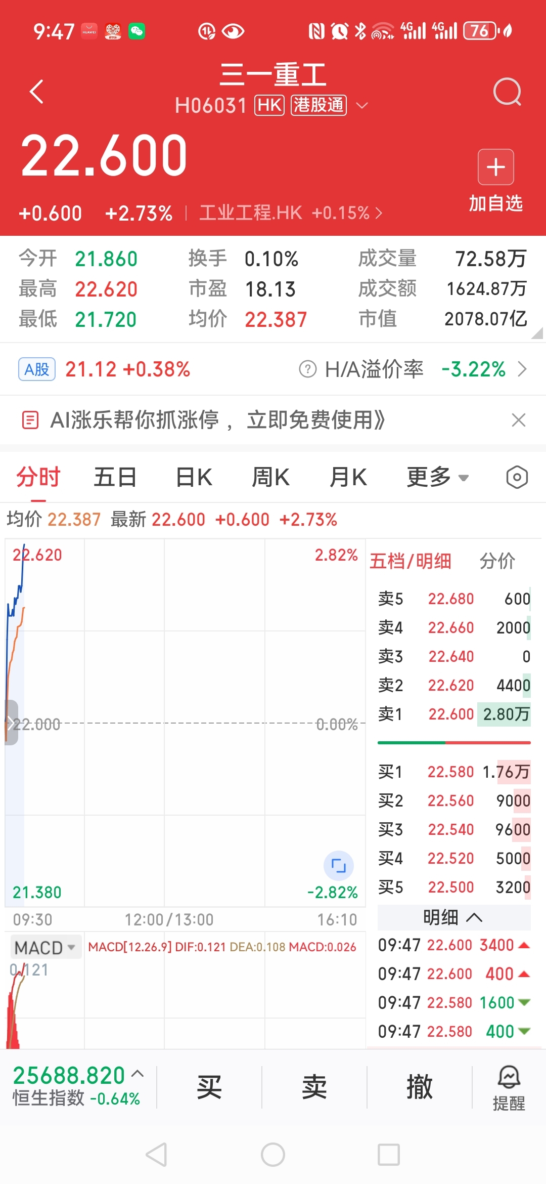 $三一重工(SH600031)$ 昨天香港四个点,今天三个点,你是不是假的啊,同个公司居然差距这么大。。
