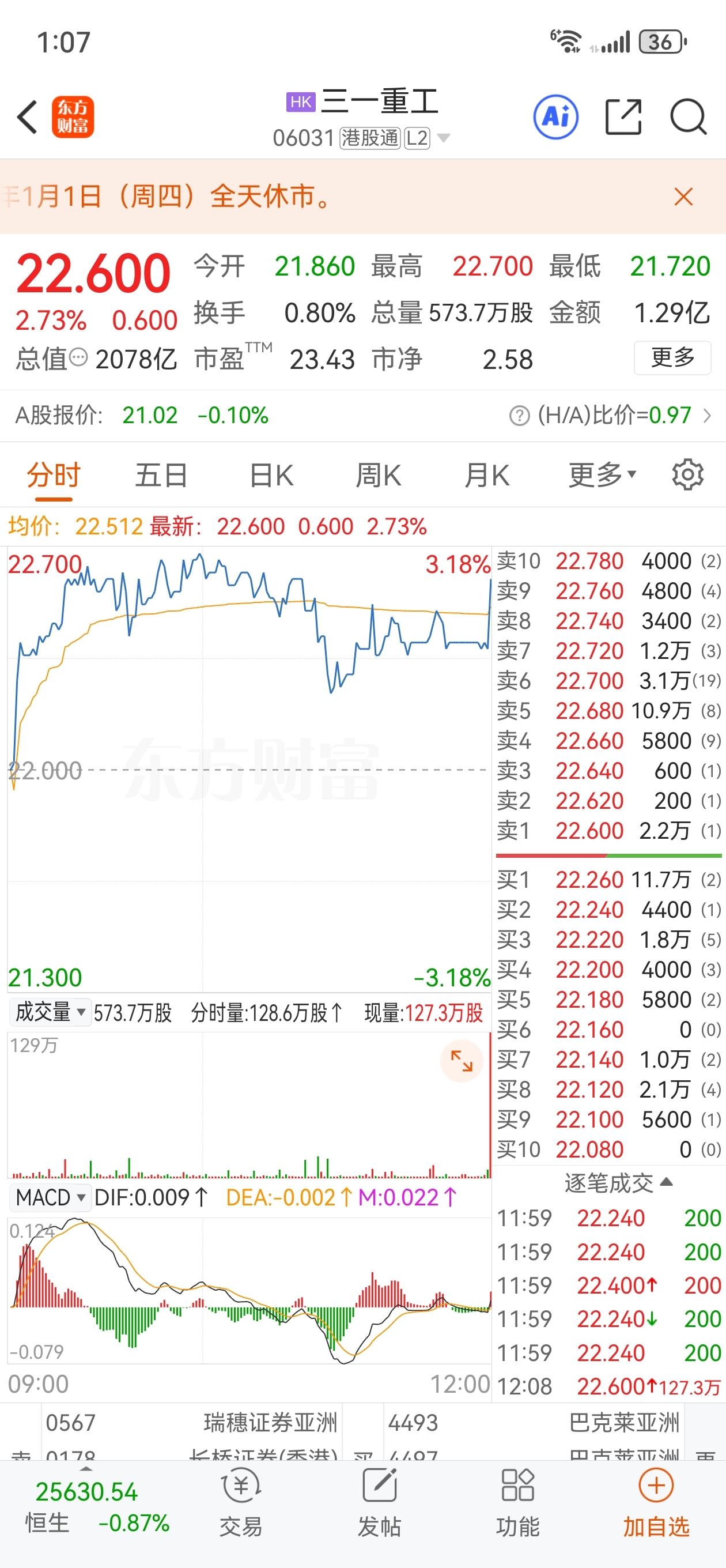 $三一重工(SH600031)$ 有啥重大消息,136万手