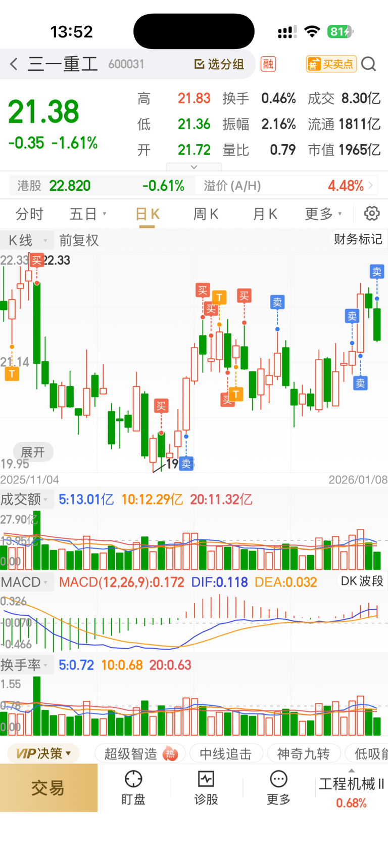 $三一重工(SH600031)$ 再见了,三一,#炒股日记# #实盘记录#