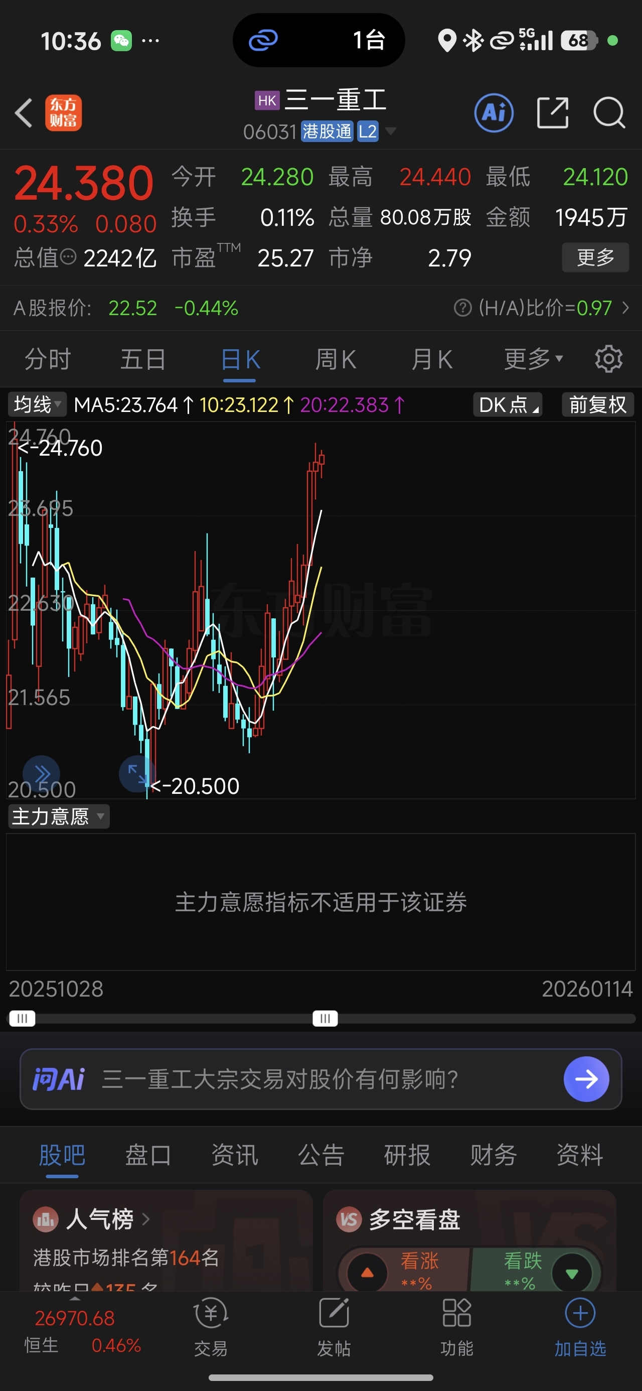 $三一重工(SH600031)$ 港股涨,你却跌!