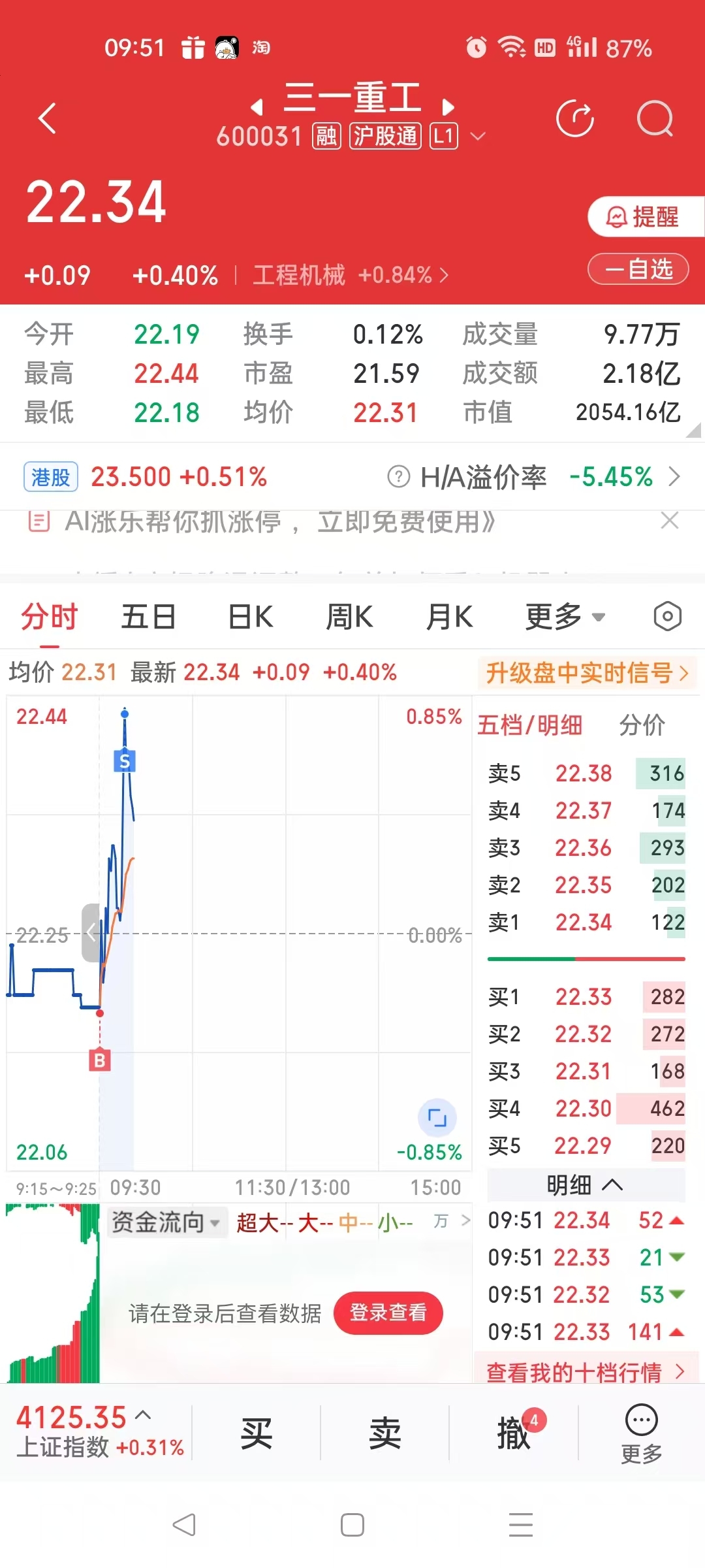 $三一重工(SH600031)$ 开盘买了,21.44跑了,两毛多也不错。面对量化,只能做差价,主动一些。