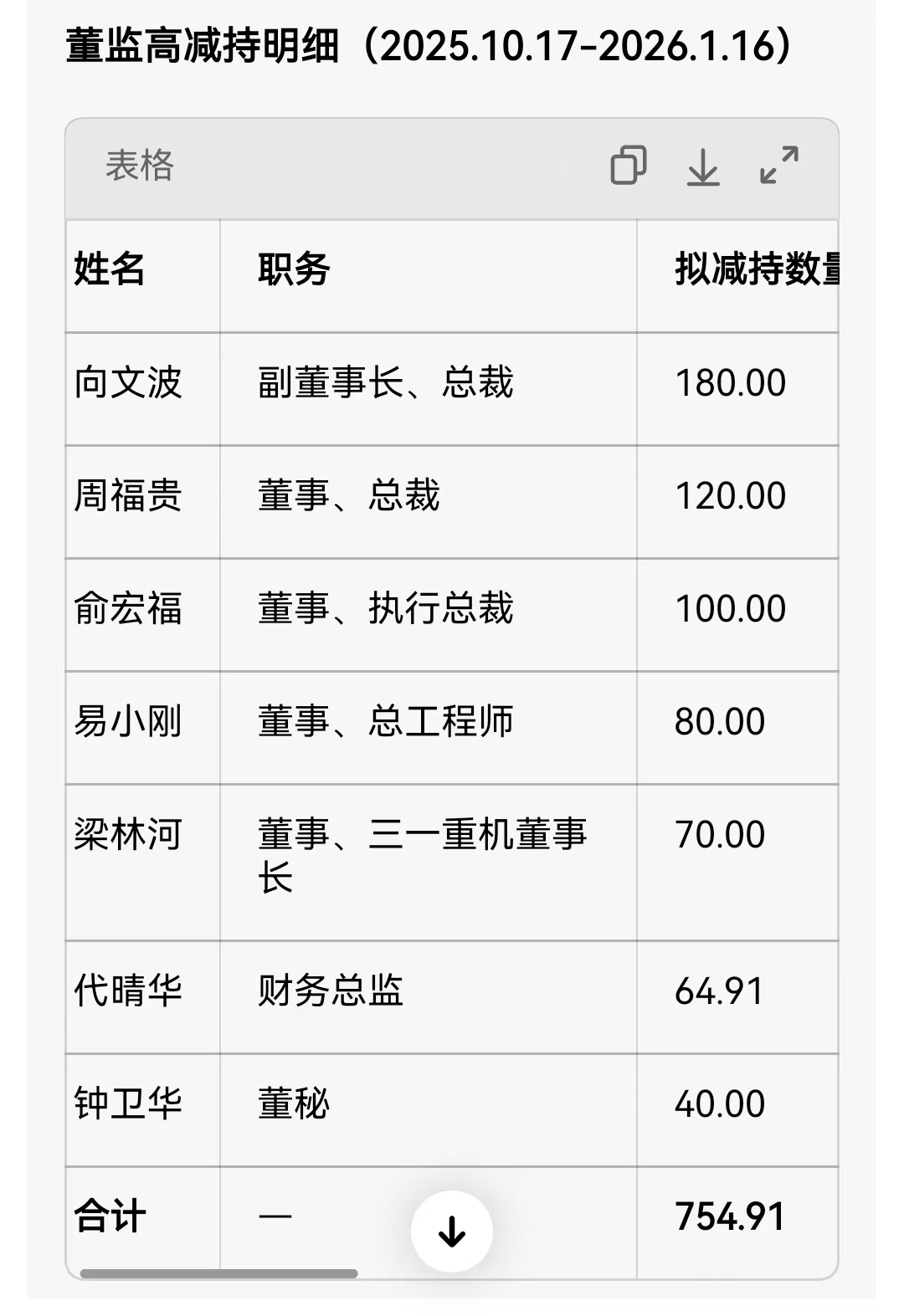 $三一重工(SH600031)$ 低价股权激励,高价减持,玩的太溜了。个人资金需求,这个原因写的很美丽,价格也非常美丽。