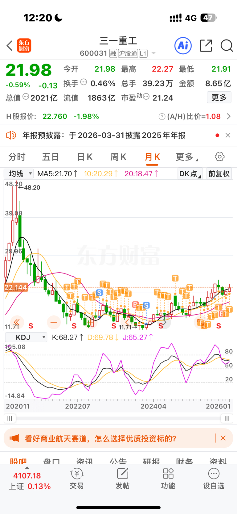 $三一重工(SH600031)$ 两成仓了