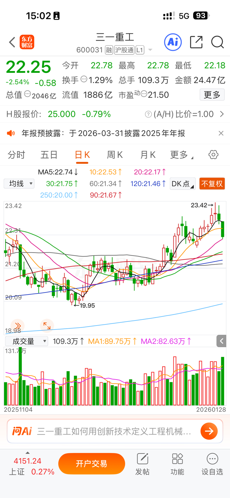 $三一重工(SH600031)$ 放量大跌,溜哦
