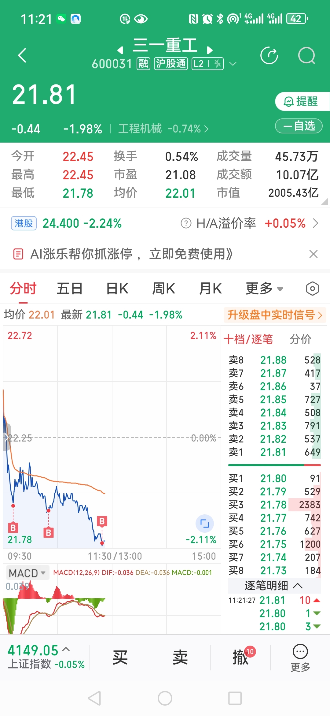 $三一重工(SH600031)$ 实际行动来买起了。能不能吃肉看明天了。