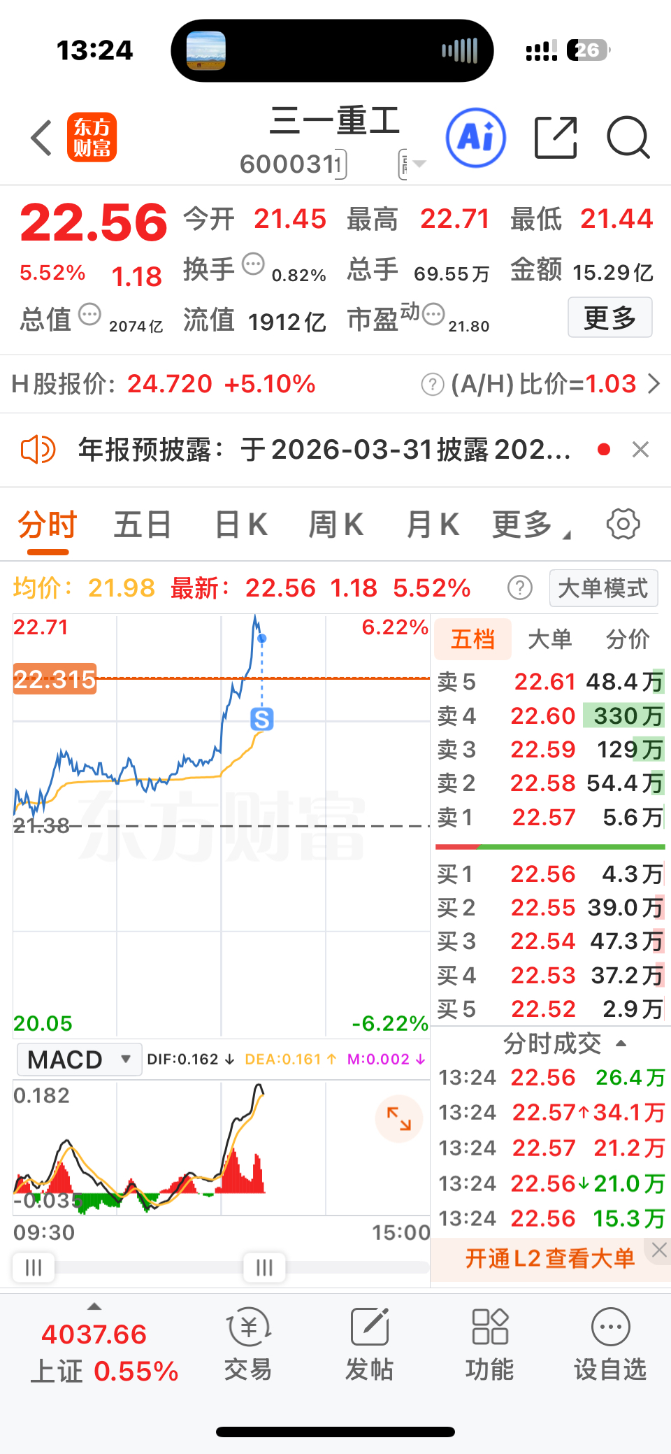 $三一重工(SH600031)$ 减部分