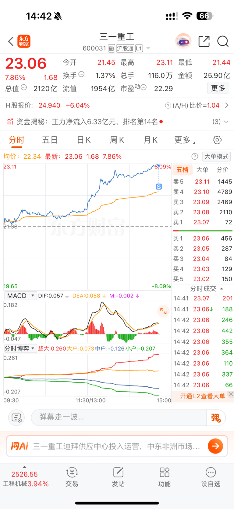 $三一重工(SH600031)$ 走了,你随意#炒股日记# #复盘记录# #强势机会# #股市怎么看#